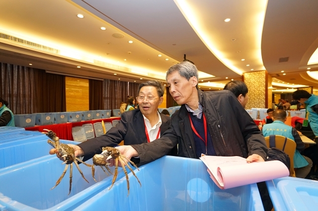 “王宝和杯”全国河蟹大赛以突出河蟹的整体实力和团体优势为主,淡化蟹王和蟹后等单项冠军。参赛单位需提供雌雄河蟹各14只,共28只大闸蟹。所有评比参数采用葡京8883官网入口开发的“全国河蟹大赛评比软件系统”,由计算机在综合参赛河蟹体重、壳长、肥满度和个体差异后打分,从高到低排序来确定金蟹奖。在金蟹奖中由专家根据色泽、气味、口感等性状评选出最佳口感奖。为鼓励全国养蟹单位推广应用优质种源,全国河蟹大赛还设立了最佳种质奖。