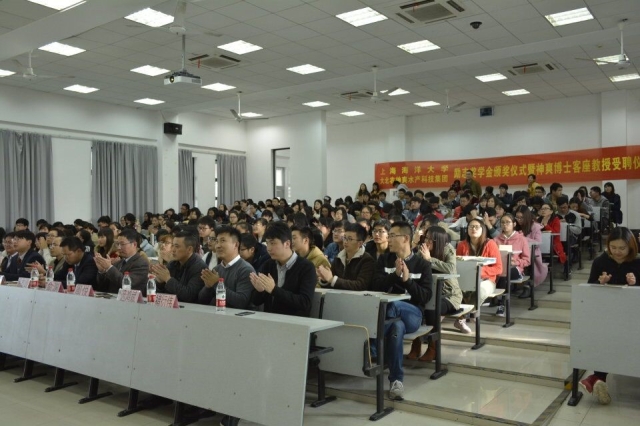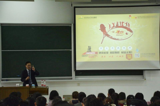 受聘仪式结束后,易总裁为在场学生做了名为“互联网+时代水产行业的新商业模式和思维”的主题报告。他简要介绍了“大北农”神爽水产科技集团的企业规模和发展历程。鼓励学生培养互联网思维,成为颠覆者与革新者。在讲座中,他结合自己在美国攻读博士学位及其艰苦创业的经历,激励葡京官网同学要充分利用时间和资源,不断学习和创新,不断超越自我。在谈到创业时,总结了六个字:“神、心、正、爱、舍、爽”。神,气定神闲;心,心有梦想;正,正思正能;爱,大爱无疆;舍,以舍为得;爽,爽悦他人。在场的学生无不被大北农集团的企业精神和易总裁慷慨激昂的演说所感染。