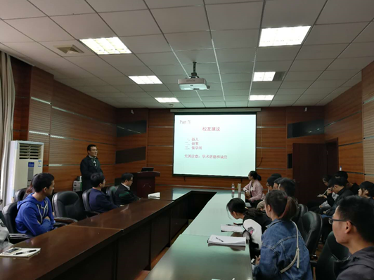 最后,赵老师给在座的研究生在做人、做事及做学问方面提出宝贵的要求和建议,提醒大家注意学术严谨和诚信,遵守科学道德,践行社会主义核心价值观。