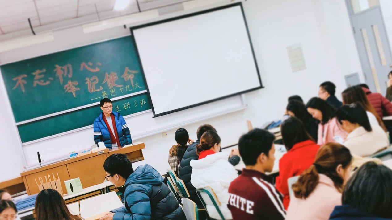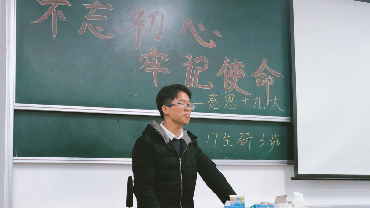 中国共产党第十九次全国代表大会在北京人民大会堂的召开,习近平代表第十八届中央委员会向大会作了题为《决胜全面建成小康社会夺取新时代中国特色社会主义伟大胜利》的报告。此次大会的主题为“不忘初心,牢记使命,高举中国特色社会主义伟大旗帜,决胜全面建成小康社会,夺取新时代中国特色社会主义伟大胜利,为实现中华民族伟大复兴的中国梦不懈奋斗。”党的十九大是在全面建成小康社会关键阶段、中国特色社会主义发展关键时期召开的一次十分重要的大会,对鼓舞和动员全党全国各族人民继续推进全面建成小康社会、坚持和发展中国特色社会主义具有重大意义;同时也为了同学们进一步深入理解、体会十九大报告精神,更好地了解十九大的精神内涵,把青年思想统一到学习贯彻习近平总书记治国理政新理念新思想战略上来,使青年能够更好地担负起党和人民赋予的历史重任,为此,葡京8883官网入口17级生物学3班于2017年11月22日下午在2106教室举行了“不忘初心,牢记使命——感恩十九大”主题团日活动。