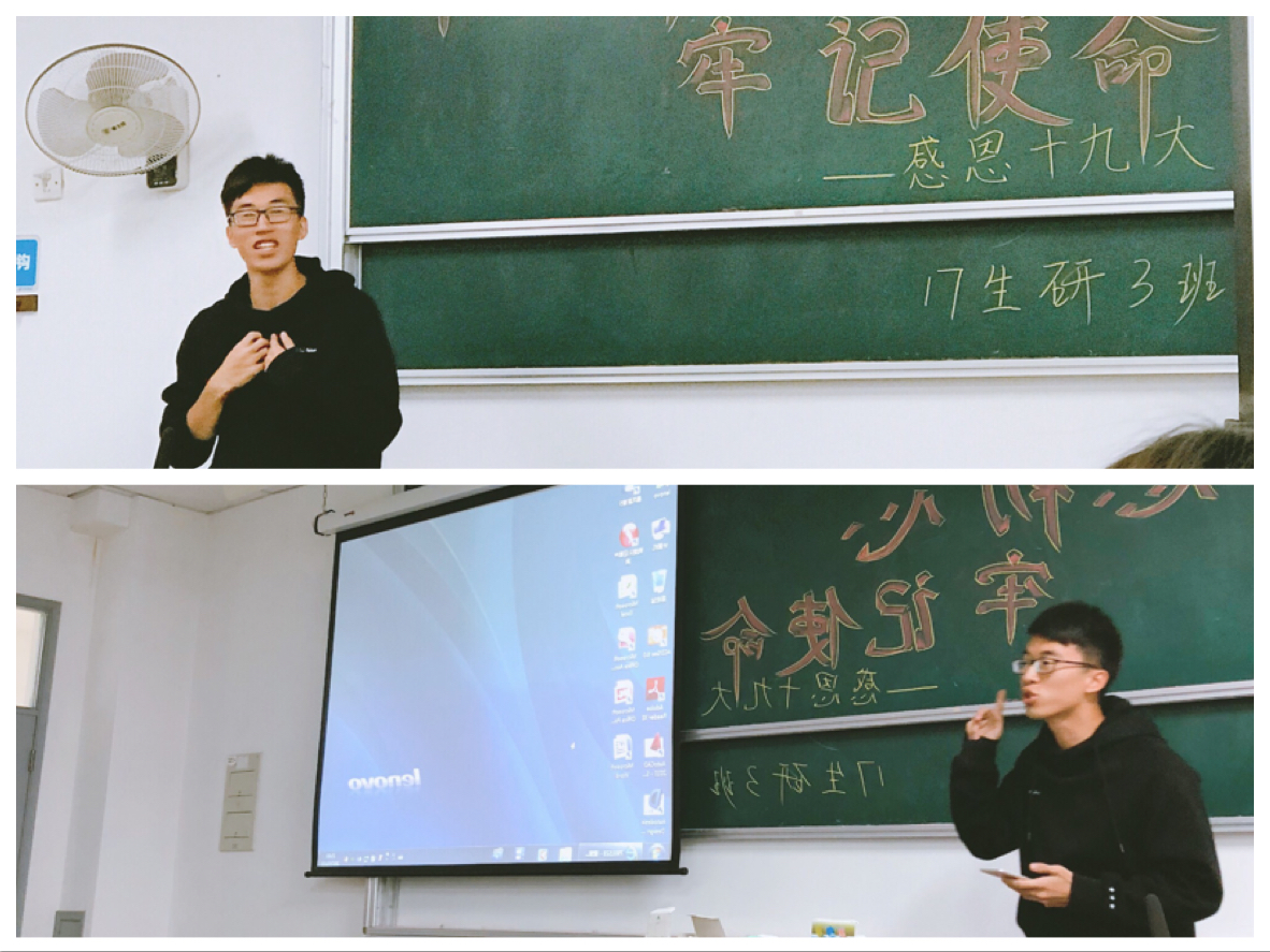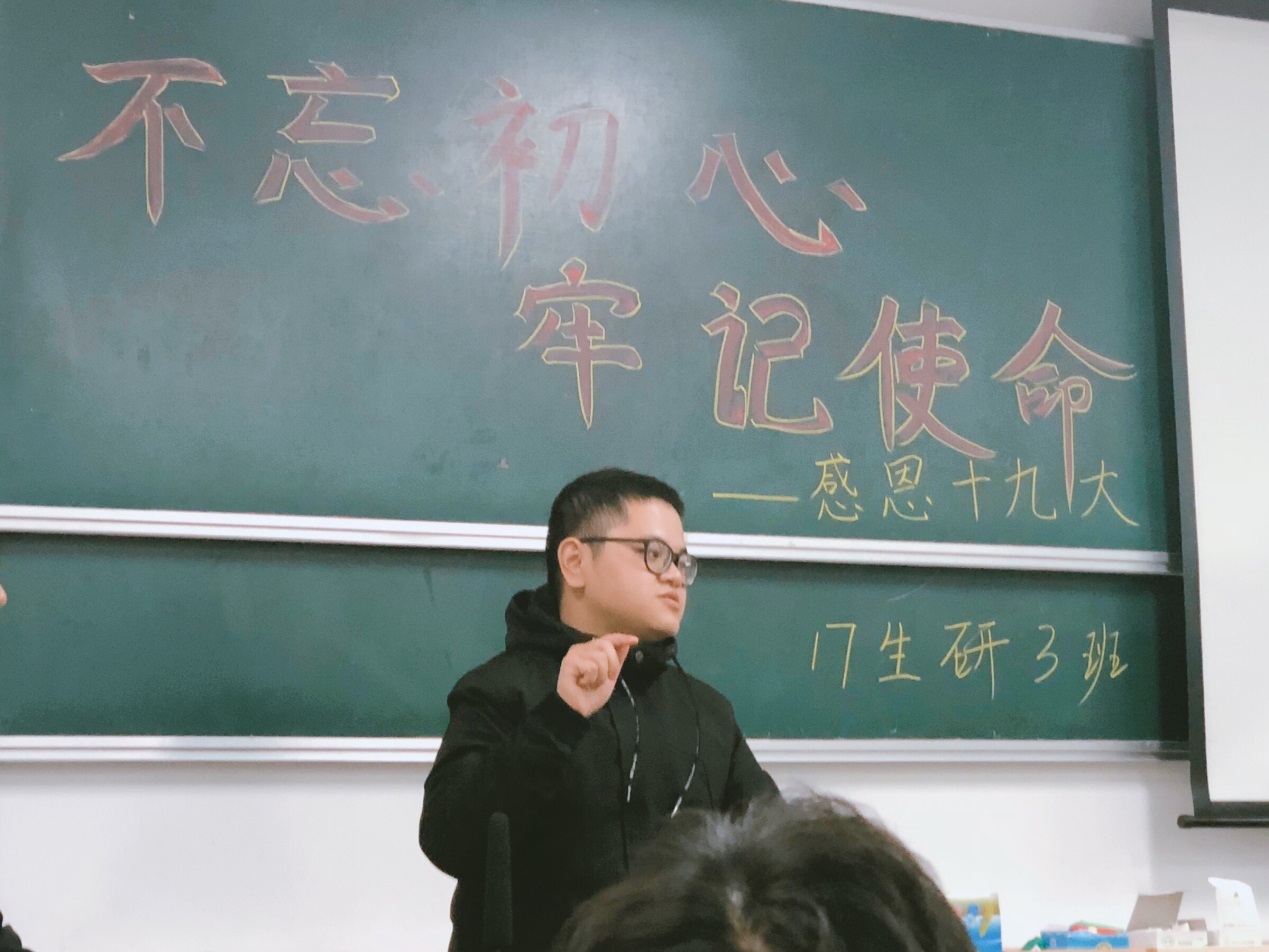 通过聆听各个兄弟姐妹的动听的分享,我们坚信,葡京8883官网入口2017级研究生3班的兄弟姐妹都已经感受到了我们家乡的变化,国家的变化。在党中央的正确领导下,在党的基本理论、基本路线和基本纲领的指引下,沿着建设中国特色社会主义道路继续前进,我们的目标就一定能够实现,到本世纪中叶,中国必将屹立于世界强国之林,中华民族必能昂立于世界民族之中,实现中华民族的伟大复兴!时代在不断变化,社会主要矛盾也发生了变化,在攻坚克难的改革关键时期,十九大的召开将会砥砺我们不断前行;人民的生活幸福始终是党和国家关心的重点,作为青年一代,感慨我们生活在这个时代,真好!同时也深感肩上的责任重大,我们有责任为实现中华民族伟大复兴的中国梦贡献自己的力量。在今后的路上,我们也会跟追寻党的脚步,关注时事,关注国家,从自己做起,从身边的每一件小事做起,满怀豪情的再创新世纪的辉煌!