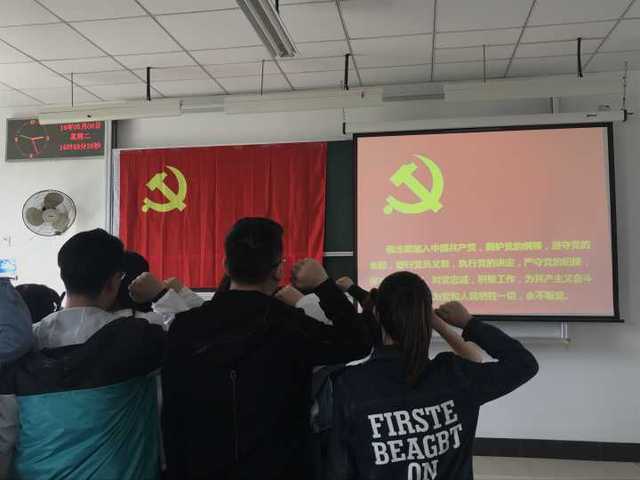 2018年5月8日下午葡京8883官网入口预备党员入党宣誓仪式在2206教室隆重举行。2018年上半年预备党员培训班全体学员参加,2018年上半年入党积极分子培训班学员观摩了此次仪式,仪式由院党员服务中心主任苗艺馨同学主持。