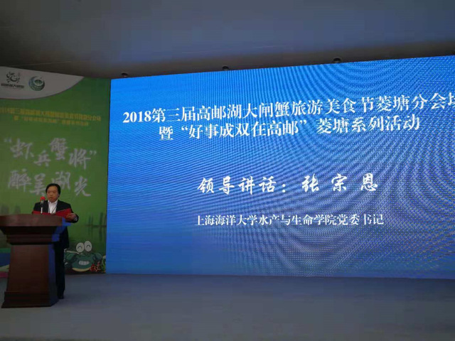 李家乐代表学校在开幕式上致辞。他指出,高邮湖具有湖大、水活、无污染、水草多等特点,为高邮湖大闸蟹的良好品质提供了保障。高邮湖大闸蟹是人工放养、自然生长,造就了其“壳青、肚白、肉鲜、味美”的独特优势,属于江苏省高邮市特产,中国国家地理标志产品。高邮湖大闸蟹已建立产学研养殖模式,2017年11月高邮市大闸蟹产业协会与葡京8883官网入口签定产学研合作协议,2018年4月正式展开合作,已在高邮湖市临泽镇川东村设立合作试验点。近年来,高邮湖大闸蟹产业有序发展,稳步推进。2017年12月荣获2017“王宝和杯”全国河蟹大赛金奖。高邮湖大闸蟹产业发展迅猛,其影响力和知名度已大大提高,蟹农的收益也大幅提高。