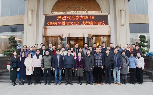 2018年12月14日至16日,《鱼病学图谱大全》(以下简称:《图谱》)第六次编辑工作会议在四川省成都市召开。《图谱》由w葡京官网杨先乐教授担任主编,由海洋出版社出版。《图谱》首次系统地以千余幅图片的形式直观、形象、准确地展示了鱼病学的最新基础理论和技术方法。《图谱》的参编人员包括来自二十余家自国内相关高校、研究院所和技术推广部门的四十余名专家学者,该书的编著成功将会填补国内外鱼病知识图谱领域的空白。本次会议之前,《图谱》已经历时八年的筹备和编写,已经完成初稿。来自葡京8883官网入口、四川农业大学、中山大学、中国科学院、中国水产科学研究院等相关高校研究机构和海洋出版社的30余名代表参加了本次编辑工作会议。