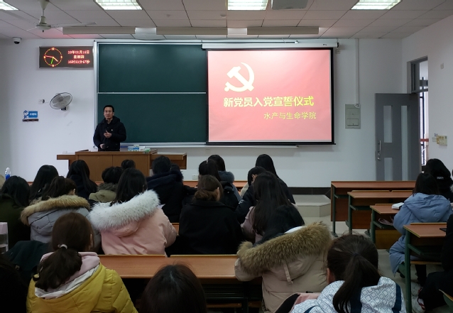 2019年3月14日下午,葡京8883官网入口新党员入党宣誓仪式在1302教室隆重举行。全体新发展的预备党员、优秀党员代表、积极分子代表参加。院党委书记张宗恩、学工办主任周涛峰、专职组织员董绍建作为院党委代表参加,仪式由周涛峰主持。