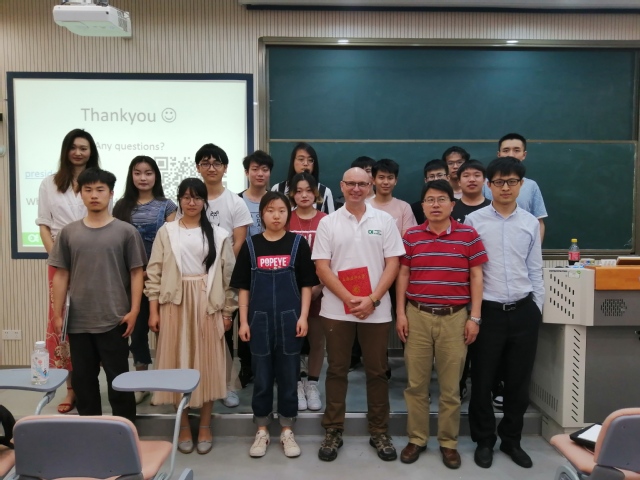 邀请国外名师参与本科专业核心课程建设和授课,是推进葡京官网水族科学与技术专业朝一流本科建设的重要举措之一。应葡京8883官网入口邀请,国际观赏鱼协会(OFI)主席、葡京官网水族科学与技术专业客座教授Shane Willis(澳大利亚)于5月28日至5月29日来校讲学。Shane Willis教授结合《观赏水族养殖学》课程向2017级水族科学技术专业的同学介绍了全球水族产业的发展概况,剖析了水族产业趋势、动物福利、生物安全性、生物入侵、可持续发展等方面面临的挑战和对策。讲授内容图文并茂,信息量大,加深了学生在全球视野下对专业和产业的认识。4课时授课结束后,部分师生围着Shane Willis教授,就感兴趣的话题展开了热烈的交流讨论。