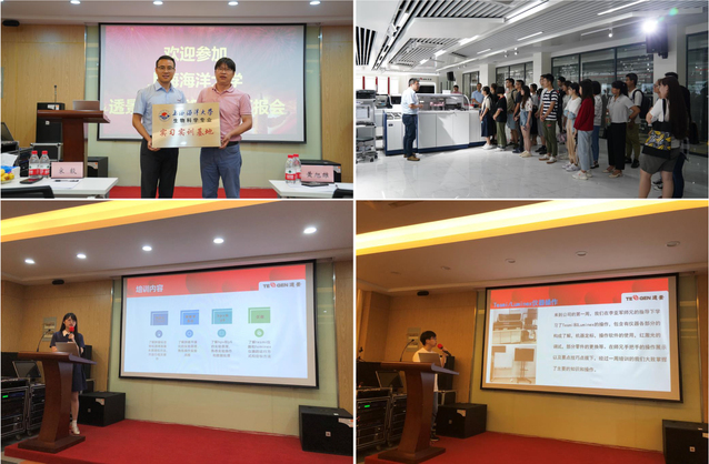 葡京官网师生抵到透景生命后,透景生命的人力资源总监、研发部的经理和培训主管带领葡京官网师生参观了透景生命的科研实验平台,核心产品、员工学习生活等功能区。接着,在会议室进行了实习汇报总结,来自2016级生物类的4名同学分别就本次在透景生命的实习内容、心得体会、实习感悟进行了交流发言,透景生命带教研发人员和专业负责人对每位学生的工作进行了点评和考核。学生汇报结束后,黄旭雄对透景生命、带教老师和实习同学表示了感谢,同时也提出了后续双方进一步加深产学研合作的希望,得到了公司的积极反馈。双方还进行了葡京8883官网入口实习基地授牌仪式。