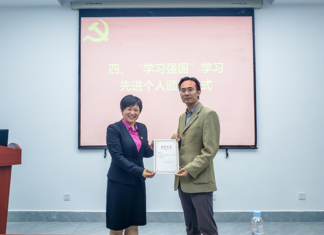 10月21日,学院党委举行了阶段性学习先进个人表彰会。会议由学院党委书记黄旭雄教授主持,学院党委副书记、院长谭洪新同志给学习先进个人铜奖获得者颁发证书,校纪委副书记、主题教育办公室陈江华同志给学习先进个人银奖获得者颁发证书,校党委副书记、纪委书记何雅同志给学习先进个人金奖获得者颁发证书。后续,学院将继续通过开展“学习强国”学习积极分子的评选,来持续提升党员师生理论学习的自觉性,让学习成为常态。