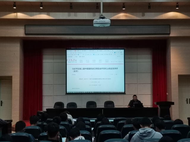 会上,董绍建书记继续带领大家学习习近平在第二届中国国际进口博览会开幕式上的主旨演讲,习书记指出:回顾历史,开放合作是增强国际经贸活力的重要动力。立足当今,开放合作是推动世界经济稳定复苏的现实要求。放眼未来,开放合作是促进人类社会不断进步的时代要求。其中在谈到上海自由贸易试验区临港新片区的设立发展,董绍建指出,我们作为海大人,临港人,应为新片区的发展贡献自己的一份力。