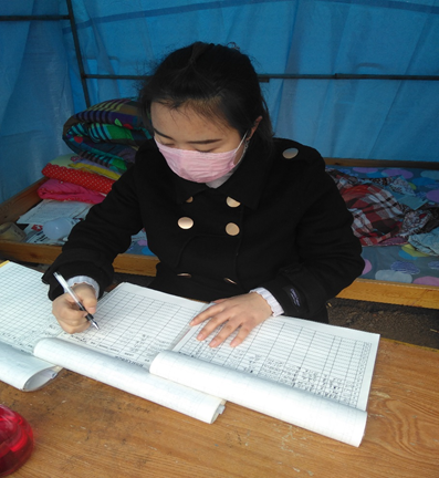 2月4日早上七点多,零下11℃的天,她早起前往村儿六社交通人流量较多的下路口执勤点开始志愿者的第一班岗。拉起警戒线,负责重点排查进出村儿的外来人员及车辆信息,配合乡镇宣传防疫知识劝返街头个别逗留行人,提醒少出门,出门必戴口罩。她连续执勤了5天,之后随着报名的志愿者越来越多,由全勤转为了轮流执勤。但她仍坚持工作,负责起了第5片地20几名返乡人员详细信息统计,对线上联系不到的群众上门隔墙登记。她说,尽管天冷,能为当前疫情防控做点什么,心里总归满足的。对于疫情防控,随时待命。