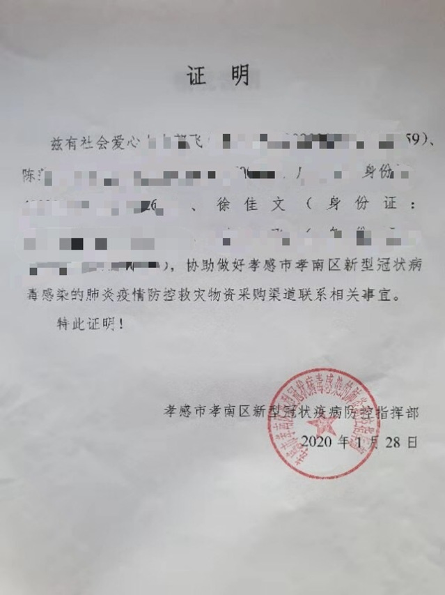徐佳文是葡京8883官网入口17级的一名研究生,在疫情愈发严重的时候,深处湖北孝感的他与多名伙伴一起在网上成立了“孝感肺炎自强自救”志愿工作组,通过线上的方式组织民间自救行动,一方面尽快将医疗物资准确送到一线医务人员手中,一方面利用研究生期间的免疫学知识给家乡的亲戚风朋友进行科普。他所在7个工作组40名志愿者从除夕工作以来受到了全国各地百名网友和多家单位的热情响应,累计委托采购物资150万余元,同时协助海内外各项物资:口罩(16.5万)、防护服(2.1万)、隔离衣(1.15万)、手术服(3千)、消毒液(17.5吨)等送至一线人员手中。这些物资起到了非常大的应急作用,让一线人员知道全国人民与他们一同奋战,同时徐佳文和他的志愿者伙伴们也相信疫情一定会结束,未来会越来越好的!