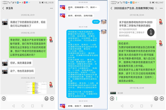 教师、课程导师、实验员、党政管理人员都迅速进入“战斗状态”,勇于探索,由于面对的是在线教学这个新生事物,很多同志一时难以得心应手。于是,2月4号学院火速成立了院系两级由12名成员组成的技术保障组,基层教学组织副主任负责任课教师在线课堂的培训、讨论交流、互帮互助。教学秘书和学生秘书负责本科生在线学习的相关事务。教学副院长邀请超星集团5名技术员入群,以求更好更快更精准地指导本院教师在线教学。