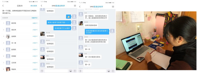 老师们还设计了多种课堂互动任务,提高学生学习兴趣。如在课程上课的时间段,与学生通过微信群、学习通app进行实时沟通。签到采用学习通拍照签到方式,以督促学生按时学习。在上课前,会在泛雅平台上发布学习任务和作用,并要求学生们按时提交作业,完成各种课堂任务,了解学生学习的状态和情况,进一步督促学生学习。李云老师的《普通动物学》后面来了几位转专业后来补选本课程的同学,由于最初无法加入学习通的班级群聊参加大家的课程讨论,所以老师主动采用之前建立的微信学习群组织指导相关同学同步学习。