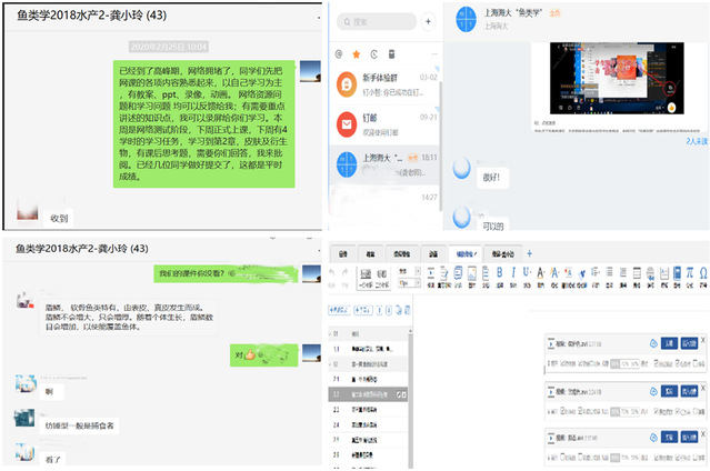 为积极响应教育部“停课不停教,停课不停学”的号召,她担任主讲讲师的2020年春季学期《鱼类学》在线教学在探索中开课了。为了达到线下教学效果,将课程的教学日历、电子课本、教案、教学PPT、课程辅助录像等教学资源上传泛雅平台,针对课程重点和难点的知识点录屏后上传到平台,同时引入“全国课程资源中心”同类课程录像,供学生学习,力求内容上覆盖本课程的知识体系。