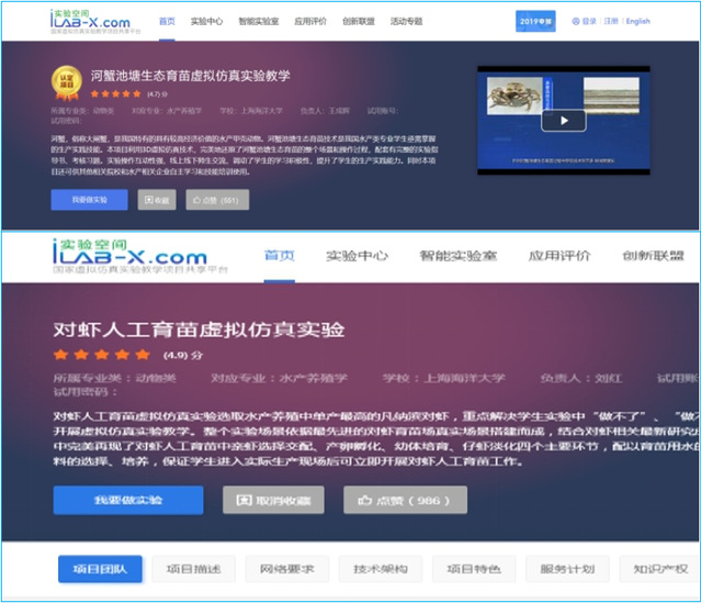 《河蟹池塘生态育苗虚拟仿真实验》自2018年上线服务以来,已连续服务了葡京官网2015级,2016级,2017级水产类学生,学生的反响良好,评价高。截止2020年5月22日,河蟹池塘生态育苗虚拟仿真实验的浏览量已达25315人次。河蟹池塘生态育苗虚拟仿真实验教学项目被认定为2018年度国家虚拟仿真实验教学项目后,此项目在“国家虚拟仿真实验教学项目共享平台”(www.ilab-x.com)” 上进行传播和共享使用,截止目前在实验空间上的实验浏览量7350人次,评价4.7分,实验用户的评价高,反响良好。