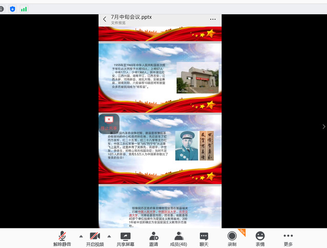 裴瑞华同志前往红色基地制作课件并在会上分享说:参观石林会议旧址,了解那段峥嵘岁月,沿着历史的车轮,重温石林红色记忆。她在会上为大家介绍了石林会议召开的背景及历史意义,以及解放军驻扎石林不拿群众一针一线优良作风的行为,让我们深刻认识到了作为一名共产党员的责任和使命。学习先辈们为党和人民的事业,敢于流血牺牲的大无畏革命精神,学习他们听从组织召唤、服从组织安排的党性原则,学习他们任劳任怨、无私奉献的高尚品格,激励我们不畏艰难,勇往直前,成为我们踏上新征程、实现新目标的坚强动力。