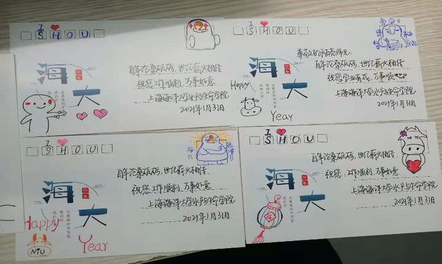 留校党员为广大校友用心设计祝福卡片写下新年祝福