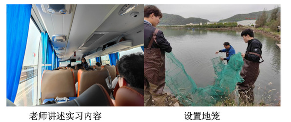 到达实习地点后的第二天,在唐老师和龚老师指导和帮助下,党小组成员率先进入泥潭、水塘设置地笼,最终成功捕获了许多不同种类的水生生物。在实习点附近的海域,利用老师教授的调查方法,通过实践,成功收集到多种海洋生物。次日,同学们对样品进行了分类,利用相关资料鉴定出了数十种不同的生物。实习中,老师还带领同学们去石浦市场、中国水产城等地进行市场调查,指导同学们从石浦港出发进行下海捕捞等工作。