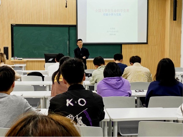 教师郑国栋曾指导本科生获得上海市大学生生命科学竞赛特等奖、全国大学生生命科学竞赛一等奖。在本次活动中,郑国栋为学校报名参加大学生生命科学竞赛的同学作了“全国大学生生命科学竞赛经验分享与交流”的培训。他从竞赛的要求与规则、竞赛的时间安排、竞赛材料的准备以及答辩注意事项等方面进行了讲解;最后,还与参赛同学进行了充分的提问交流,如竞赛材料的提交时间、创新性如何体现等,郑国栋都为一一做了详细解答,让参赛学生充分了解到参加生命科学竞赛的具体细节,期望同学们能在本次竞赛取得好的成绩。