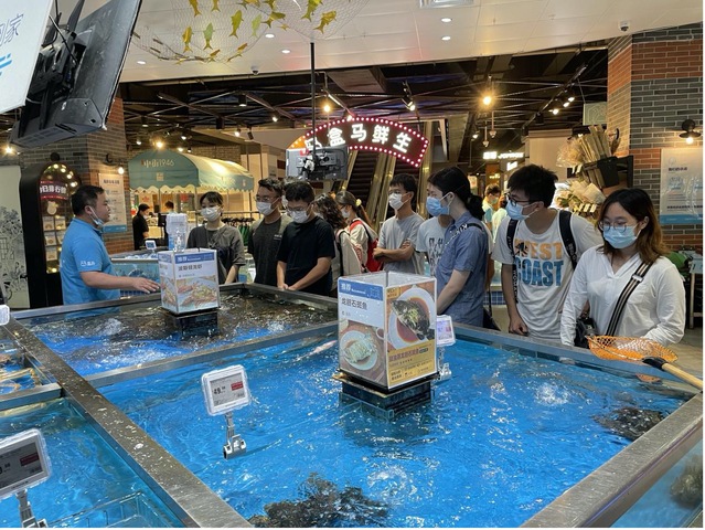 6月29日,22届水产毕业生首批11人参观了盒马星宝购物中心店。盒马是阿里巴巴集团旗下以数据和技术驱动的新零售平台,着力为消费者打造社区化的一站式新零售体验中心,用科技和人情味带给人们“鲜美生活”。盒马鲜生针对葡京官网学生制定“水产小鱼苗”招募计划。通过3个月的见习培养,培养应用型、科技型、专业型水产人才。学生通过现场观摩,了解到水产行业发展的最新动态,提升了对专业领域的认知,深化了个人在专业理论知识的打磨的定力和决心。