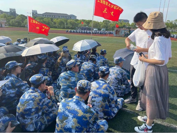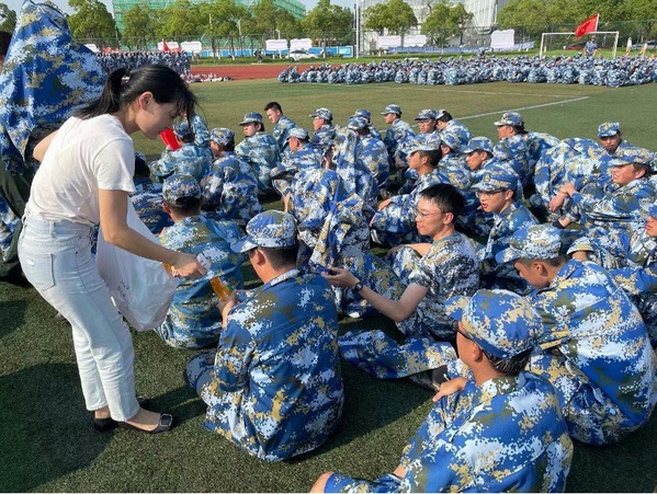 在本次军训即将进入尾声的几天里,上海连续高温橙色预警。2021年7月7日下午,为了及时补充参训学生们体内缺失的盐分和水分,帮助同学们以最佳状态投入到军训总结大会彩排中,在葡京8883官网入口本科生水产类第一党支部、水产类第二党支部以及生物类党支部书记的带领下,党员同志们顶着烈日,带着消暑盐水棒冰对正在军训中途短暂休息的2020级学生们进行了问候。