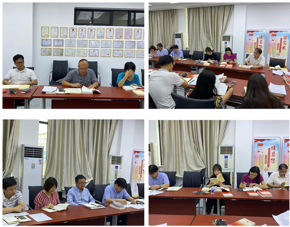 学院党委委员唐文乔、谭洪新为大家领学了《中国共产党简史》第一章至第四章,并分享了自己的学习心得。党委群工委员唐文乔将党的创立历程和弘扬伟大的建党精神相结合,阐述了坚持真理、坚守理想,践行初心、担当使命,不怕牺牲、英勇斗争,对党忠诚、不负人民的伟大建党精神,是中国共产党的精神之源,是一代代共产党人在长期奋斗中构建起的精神谱系,是照亮共产党人充满艰辛奋斗征程的灯塔。我们要将建党精神内化于心,外化于行,充满动力向着新的百年征程不断迈进。党委副书记、统战委员谭洪新向大家分享了学习我党领导全民族抗日战争及夺取新民主主义革命的全国性历程中的感悟。他指出,建立最广泛的革命统一战线是夺取新民主主义革命的胜利的重要法宝之一,而统一战线中的独立自主这个原则的说明、实践和坚持,是把革命引向胜利之途的中心一环。中国共产党正是在艰苦卓绝的革命奋斗中,坚持独立自主的原则,走出了一条具有中国特色的革命道路。