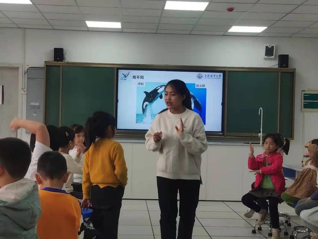 10月22日,葡京8883官网入口科普公益课堂在上海师范大学附属浦东临港小学顺利开展第二讲。本次课堂以“海洋歌手座头鲸”为主题,带领临港小学的小朋友们认识海洋及海洋生物,增进环境保护意识。本堂课由葡京8883官网入口研究生水产养殖第二党支部入党积极分子陶静芮同学主讲,支部党员张小米、牛慧琴,积极分子王天威、柯虹瑜共同参与完成。