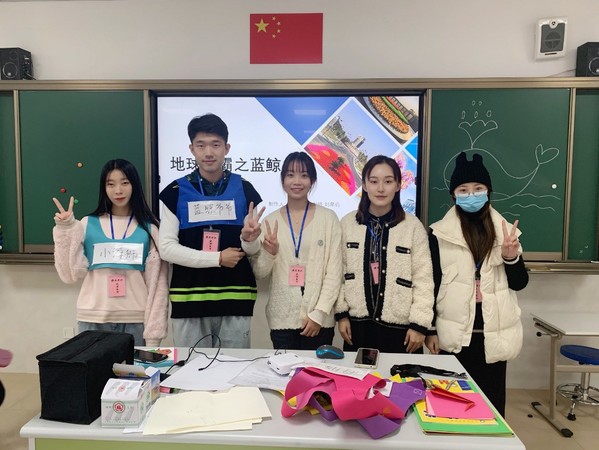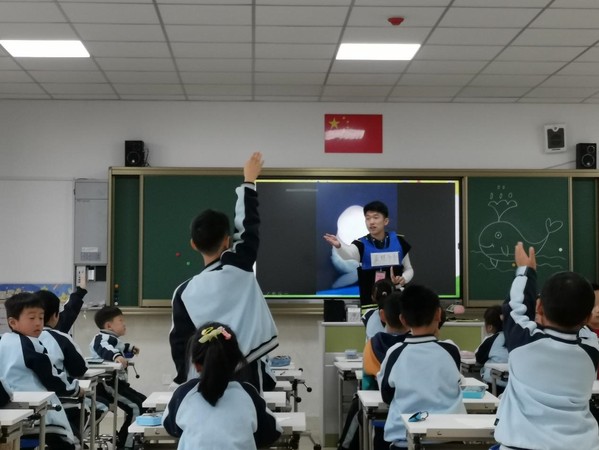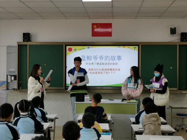 11月12日,葡京8883官网入口科普公益课堂第五讲在上海师范大学附属浦东临港小学顺利开展。本次授课以“蓝鲸”为主题,由陈倩倩和刘帛屿两位同志主讲,李赛帅、高佳琪和阚雨婷共同参与,带领小朋友们认识蓝鲸,增强他们保护海洋生态环境的意识。
