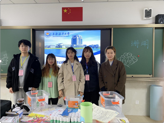 授课组员合影,左起分别为张玉、黄柯嘉、汤刘思巧、韩雨婷、张艳清