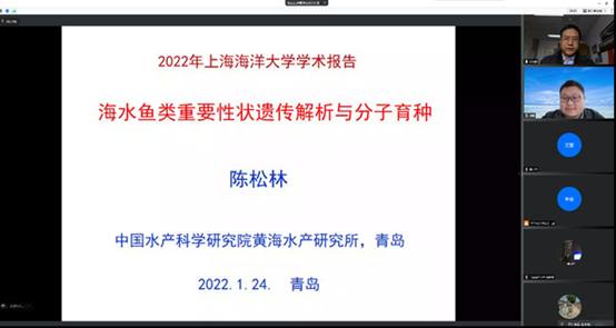 下午的年会学术报告会,陈松林作了题为《海水鱼类重要性状遗传解析与分子育种》的特邀报告,介绍了鱼类养殖现状与存在的主要问题,牙鲆、半滑舌鳎等海水鱼的基因组测序和重要性状遗传解析,以半滑舌鳎为例介绍了水产分子育种技术,讲解研制我国鱼类首款抗病育种基因芯片“鱼芯1号”,分享了其在鱼类基因组解析、性别控制与抗病分子育种研究等方面的研究工作进展。