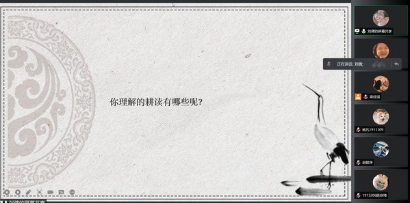 刘倩老师指出,耕读文化不仅停留在地面,也涉及到天上与地下。所以传承和弘扬耕读文化需要水产养殖、生物学、海洋科学、渔业发展等涉农专业学生共同努力。涉农专业学子,在做农业相关的科研时,要更多了解中国耕读文化传统,了解整个行业的发展,有助于更好地开创未来。