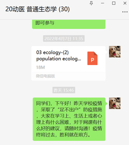 葡京8883官网入口水产养殖技术与工程系孙佳敏老师,是一名新入职老师,学校发出实施线上教学通知当天,他迅速按照操作流程熟悉线上教学步骤。他采用“学习通+腾讯会议+微信群”模式开展线上教学,“学习通”不但可以向学生提供学习资料,让学生提前了解授课内容,同时通过习题测试学生自主学习效果,了解学生现有的学习水平,选择有针对性的教学策略。“腾讯会议”搭建网络直播课程,完成网络直播教学过程,给学生提供网络教学的情感支持。“微信群”及时了解学生最新心理状态,帮助学生解决学习生活问题,缓解精神压力、消除孤独感、增强学习自信心。获得了同学们的一致好评。
