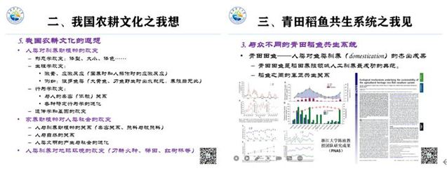 刘其根通过大豆的进口引出了中国的粮食安全问题的严峻,引发同学思考,并强调希望学生能够做到理论与实际的紧密结合,将农耕文化的发展、科学技术的创新与我国存续五千余年乃至“天人合一”哲学理念相融合,达到生命和人、人与自然的和谐共生。另一方面,刘其根教授不断强调农耕是中国传统文化的代表、是社会发展的基础,中国的农业发展,一定要从本国的优秀传统文化中寻求答案。挖掘优秀传统文化的精华,是世界观的更新重构,与西方主流思想所呈现的实证科学的一些可取之处相互完善,则是方法论的完善与进步。这样双管齐下,才能做好国家农业强国、可持续发展的伟大战略目标。最后,刘其根教授分析了当下青田稻鱼共生系统的优点与不足,用严谨的科学数据证实了水产和水稻处于平衡状态下,水稻品质有一定的提升,使得我国的粮食安全问题得以缓解。