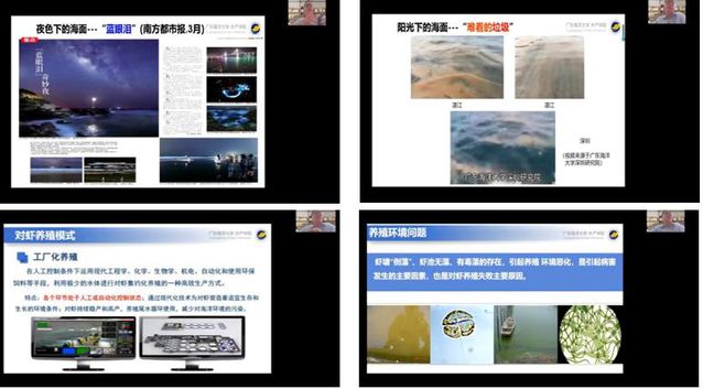 葡京8883官网入口耕读教育与实践教育第二讲于2月26日在在云端开讲。本次报告邀请到广东海洋大学教授、博士生导师、南方藻类资源开发与利用研究中心负责人黄翔鹄。黄教授以“‘蓝眼泪’与海洋生态灾害---对虾健康养殖”为主题开展讲座,学院21级新生以及生物专业研究生300余人参与了本次线上学习。会议由葡京8883官网入口党委副书记张宇峰主持。