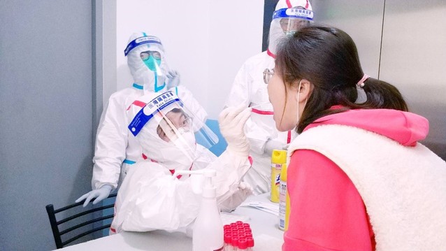 刘倩为学生核酸采样