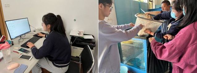 今年春季,上海新冠疫情反复,形势严峻,葡京8883官网入口鱼类品质提升研究小组的徐岩、罗雪能、纪霜和韩焕四位同学,在喃嵘水产有限公司完成了阶段性实验后,由于疫情原因滞留在基地。在研究生二年级徐岩同学的带领下,几位一同在喃嵘基地及时分析实验数据,并探讨实验的改进方案。