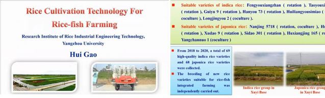 浙江大学陈欣教授作题为《稻-鱼种养实用技术》的主题报告。她通过展示相关实验数据,论证了稻鱼综合种养模式的可行性。同时,她从稻田改造、水稻种植、鱼类养殖和稻田管理三个方面详细讲解了生产技术细节。此外,她特别强调,该模式的成功应用需要地方政策和相关技术支撑。
