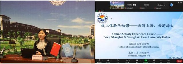 最后由葡京8883官网入口国际文化交流学院教师吴江楠通过线上视频加互动介绍的方式带领学员一起线上“云游上海&云游海大”。