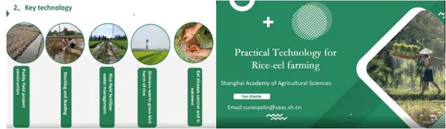 上海市农业科学院孙小淋农艺师作题为《水稻-鳝种养实用技术》的主题报告。他针对水稻-鳝种养过程中的关键技术如田埂的构造、鳝的养殖及投喂、稻田施肥及水质管理、水稻的病虫防控、稻田杂草和鸟类采食水稻的防治、鳝的病害问题及如何捕获等分别进行了详细的介绍。