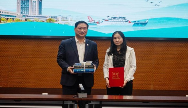 最后,伍汉霖教授家属向学校档案馆捐赠了重要的文献资料,吴建农与伍汉霖教授女儿伍晓萍合影留念。
