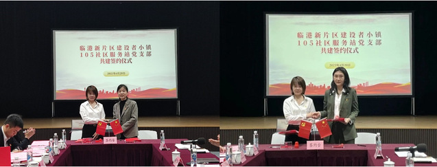 | 两学生党支部与临港新片区建设者小镇105社区服务站党支部举行结对共建签约仪式 |