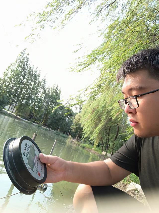 走进田间地头,用脚步丈量大地。针对南美白对虾与罗氏沼虾单一品种养殖下,出现病害频发、产量下降和效益减退的现象,张俊哲同学利用暑假时间,主动申请前往上海崇明开展实地混养实验,希望解决这一生产问题。面对创下历史新高的2022年上海夏季气温,在正午高达40℃的环境下,仍不能放松对池塘水质指标的检测,凌晨伸手不见五指的夜晚也是最不可忽视的巡塘时刻。在此期间,张俊哲同学克服了高温、蚊虫等困难,全程参与养殖,包括基建、种草、放苗、投料、监测、销售等各个环节,切实感受到水产养殖的艰苦和魅力,谱写了海大学子“勤朴忠实”的青春华章。
