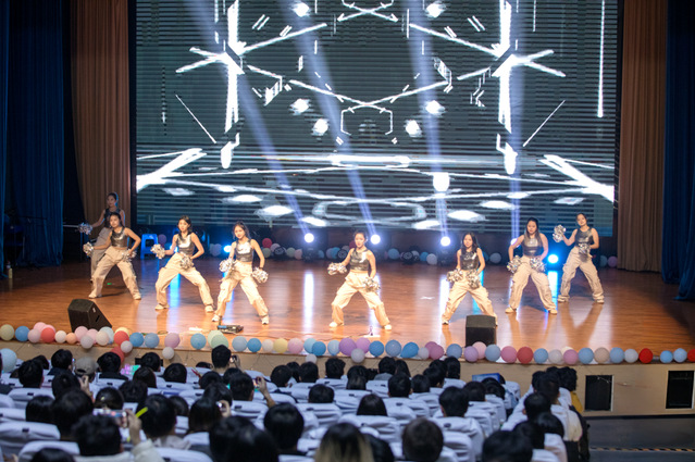 晚会以日盛蝶乐队的《老人与海》和《落京》翻奏拉开序幕,欢快的旋律瞬间点燃了现场气氛。随后,活力满溢的啦啦操《Word up》惊艳登场,瞬间点燃了全场的激情。蔡松霖的吉他弹唱《一万次悲伤》和葡京8883官网入口学生合唱团的《海阔天空》响彻全场,让人沉浸在音乐的海洋中。舞蹈串烧由廖敬雅、金佳雯、黄雩华等同学倾情演绎,以其动感强劲的节拍,激荡起青春蓬勃的朝气。