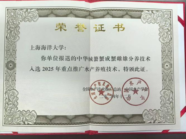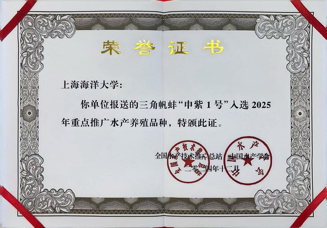 近期,全国水产技术推广总站和中国水产学会公布了2025年重点推广水产养殖品种和重点推广水产养殖技术。经各单位推荐和专家评审等程序,共遴选出20个重点推广水产养殖品种和19 项重点推广水产养殖技术。葡京官网牵头培育的三角帆蚌“申紫1号”和耐低氧团头鲂“浦江2号”入选重点推广水产养殖品种,研发的“应用人工配合饲料养殖鳜鱼关键技术”和“中华绒螯蟹成蟹雌雄分养技术”入选重点推广水产养殖技术。这是葡京官网入选全国水产技术推广总站重点推广水产养殖品种和重点推广水产养殖技术数量最多的一年,彰显了葡京官网水产学科深入实施创新驱动发展战略,服务促进高质量发展的能力。