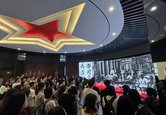 在讲解员的带领下,预备党员们认真聆听了关于展馆内大量珍贵史料和历史影像的介绍,深入了解了背后的英雄故事,深切感受到革命青年英勇抗战、同舟共济的感人情怀。大家仿佛回到了那个风雨飘摇却充满希望的年代,真切体会到革命青年以血肉之躯守护民族独立、以铮铮铁骨迎击强暴的壮烈。