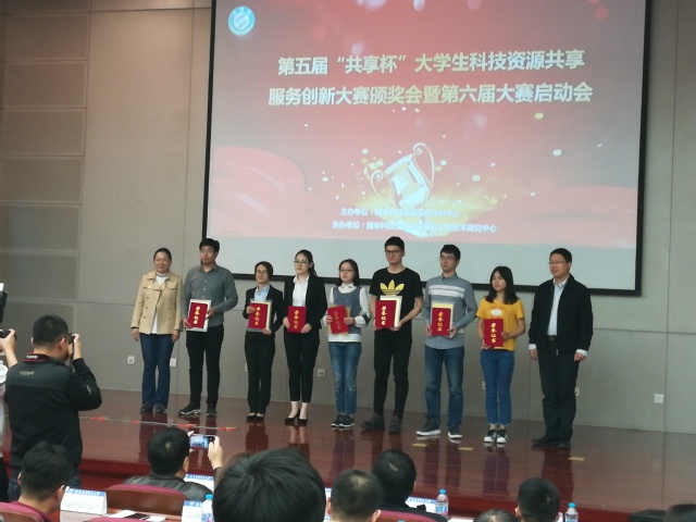 4月12日,第五届“共享杯”大学生科技资源共享服务创新大赛总结颁奖会暨第六届大赛启动会在北京举行。大赛主办单位国家科技基础条件平台中心副主任王瑞丹,承办单位国家科技资源共享服务工程技术研究中心主任吕卫锋,共青团中央学校部副部长宋来,专家委员会主席刘德培院士、副主席何鸣鸿研究员等领导及专家出席大会,并为获奖人员和单位颁奖。大赛专家委员会、国家科技资源共享服务平台、各省市科技平台、大赛合作企业、相关高校、科研院所和近200名获奖选手代表参加会议。