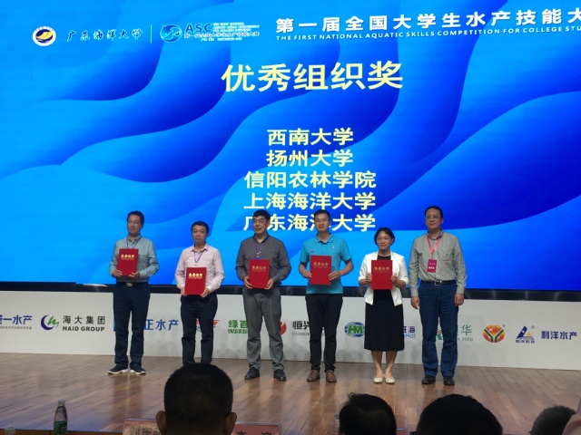 为深入贯彻落实教育部、农业农村部、国家林业和草原局《关于加强农科教结合实施卓越农林人才教育培养计划2.0的意见》,强化大学生专业实践技能培养,11月22日至24日,由教育部高等学校水产类教学指导委员会、水产学科国家级实验教学示范中心联席会主办,广东海洋大学承办,广东恒兴饲料实业股份有限公司等单位协办的首届全国大学生水产技能大赛在广东海洋大学(湖光校区)举行。来自全国54所高校的近300名选手同台竞技,展示我国高校水产类专业学生的实操技能和专业综合素养。葡京官网6名参赛选手在陈立婧、龚小玲、张瑞雷、许丹、徐灿等5位老师的带领下前往广东参赛,参与了全部六个比赛项目,最终斩获特等奖2项,一等奖3项,二等奖1项。葡京官网荣获优秀组织奖。