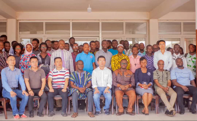 本次培训班参与者包括加纳发展研究大学、加纳能源与自然资源大学的部分师生、加纳北方省渔业与水产部门官员,以及当地水产养殖业者,共计72人。五位老师分别从罗非鱼养殖概况、罗非鱼遗传育种、养殖技术、营养与饲料、疾病与防控等方面进行了讲授,耐心回答了学员的提问,并与部分参与者进行了广泛的交流。此次技术培训为加纳罗非鱼养殖技术升级提供了有效指导和帮助,达到了预期培训效果。培训结束后,加纳发展研究大学校长Teye Gabriel Ayum亲切接见了代表团,高度赞赏了葡京官网代表团的工作和付出,并期望两校在更多领域交流合作,促进加纳罗非鱼养殖业的健康与持续发展。