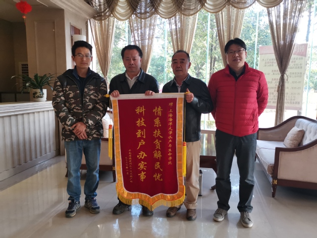 1月18日早,德宏州水产技术推广总站站长韩东带领技术员李治虎专程送来锦旗,感谢葡京8883官网入口对德宏州特种水产技术的帮助。韩东表示,2018年以来,葡京8883官网入口原党委书记张宗恩、党委书记黄旭雄、马旭洲、刘至治、戴习林等先后30余人次到德宏州就南美白对虾、加州鲈鱼池塘养殖,罗氏沼虾、中华绒螯蟹稻田养殖及土著鱼类人工繁育等特种水产养殖技术进行技术指导和帮扶,有力地推动了当地水产技术的提高和特种水产养殖的发展,为德宏脱贫攻坚起到了重要的推动作用。2020年,希望在双方的共同努力下,德宏水产养殖能够在脱贫攻坚的关键之年取得更多的成果更大的成效。