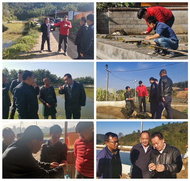 黄旭雄、马旭洲先后前往德宏州芒市芒市镇、遮放镇,瑞丽市畹町镇等地进行技术指导。在遮放镇街道5队傣族养殖户孟岩回的稻田里,黄旭雄、马旭洲详细查看并询问了其稻田养蟹的情况,就水草栽培、饲料投喂等工作对其进行了具体的指导。孟岩回对葡京8883官网入口一年多以来对其的技术指导和帮助表示真诚的感谢,同时表示,脱贫靠大家,他正在做工作,2020年将努力用自己的亲身经历说服带动更多的村民开展稻田综合种养,把脱贫致富路走得更长更宽。在芒市芒市镇大湾村锅盖石稻田特种水产稻田养殖基地,黄旭雄、马旭洲了解了2019年底投放的扣蟹生长情况,对目前存在的幼蟹上岸状况进行分析并就问题的解决提出建议,同时对下一步罗氏沼虾的养殖情况进行沟通。在德宏州土著鱼人工驯养繁殖基地,黄旭雄一行听取了州水产技术推广站技术人员对土著鱼驯养繁殖情况的介绍,对这一工作的深入推进与其进行了深入的交流。黄旭雄一行还去查看了瑞丽市畹町镇混板村委会弄片沈国强的稻田养蟹、罗氏沼虾养殖基地建设情况,对其建设和进一步深入开展进行了指导。